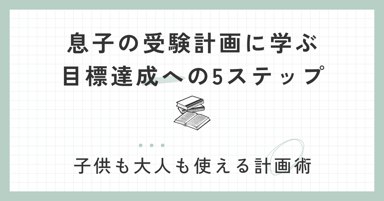 この計画を立てる過程で、受験だけでなく、どんな目標でも、この5ステップを踏むことが重要だと思ったので、今回はその気づきをシェアしたいと思います。
