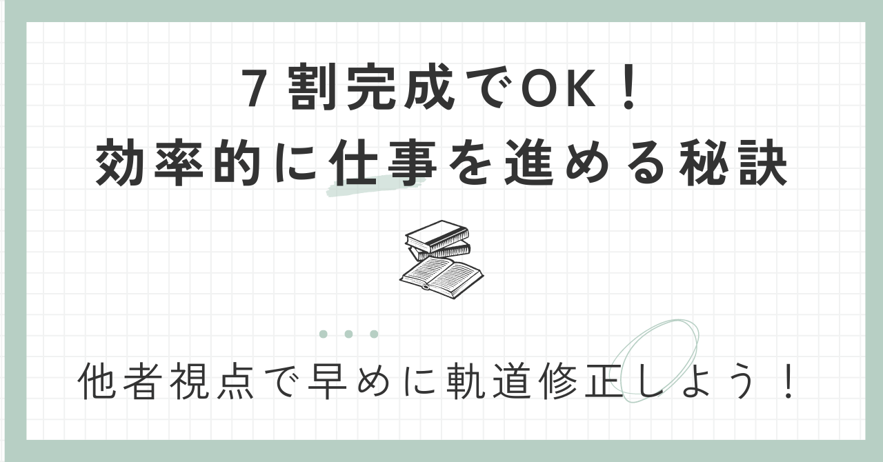 完璧を目指すのではなく、7割の段階で他者の視点を取り入れることは、時間を無駄にせず、質の高い成果を生み出すための賢い戦略です。