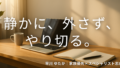 一つひとつは小さなことですが、「どうするか」を毎回考えずに済む状態を作っておくことで、自分のペースは崩れにくくなります。